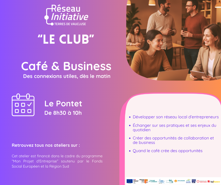 Initiative Club lance un nouveau rendez-vous matinal mensuel dédié aux chefs d’entreprise et entrepreneurs accompagnés par Initiative Terres de Vaucluse.