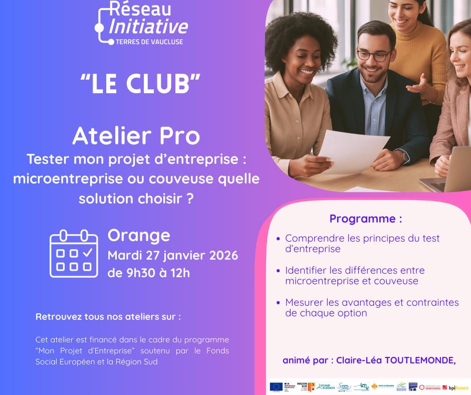Vous souhaitez tester votre projet d’entreprise avant de vous lancer définitivement ? Cet atelier vous permet de comparer le statut de microentrepreneur et le parcours en couveuse d’entreprise, afin de choisir la solution la plus adaptée pour démarrer et