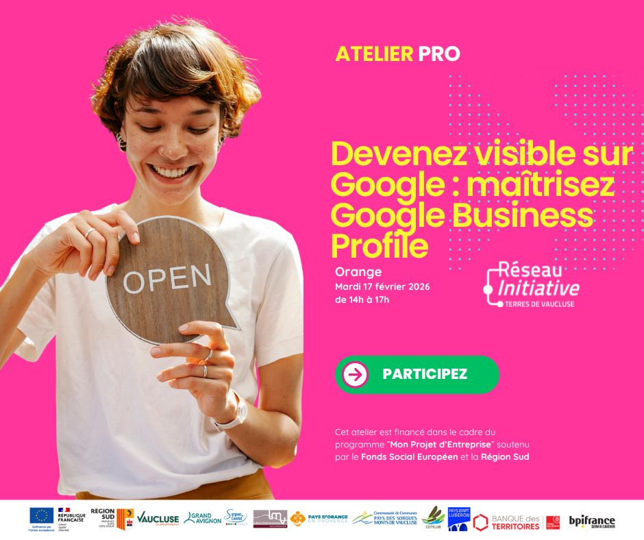 Cet atelier, proposé par Initiative Terres de Vaucluse, a pour objectif d’accompagner les entrepreneurs dans la prise en main et l’optimisation complète de leur fiche Google Business Profile, de manière concrète et opérationnelle.